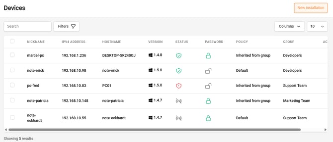 You can make bulk changes and deletions to devices, making management easier. To do this, use the checkbox on the left and then click the Bulk Actions menu.