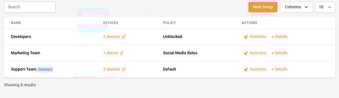 Here, you manage the groups to which your devices will belong. You can create several groups and separate them in the way you deem best for identification.
