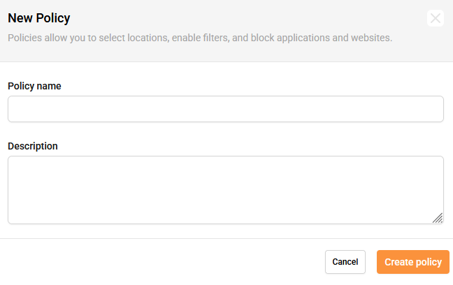 - The next page is for you to name your policy with its use in mind. In the description you can enter information on how it will be applied in your network.