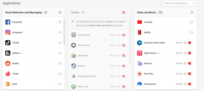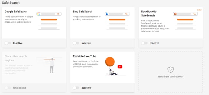 - Safe search: This section allows you to restrict search results on Google, Bing and DuckDuckGo. As for YouTube, it will block inappropriate comments and videos on the platform.