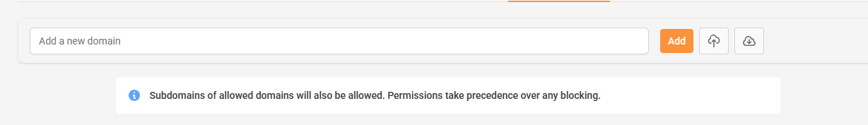 The Allow list you to add specific domains that you want to allow manually, even if they may be blocked from other filters. Simply enter the URL in the field indicated and click Add.