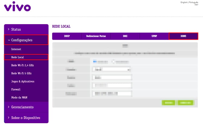 Configuração de DDNS - Roteador Vivo- Vá até Configurações ⮕ Rede Local ⮕ DDNS.