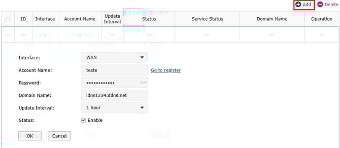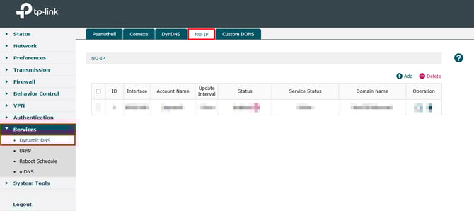 - Vá até Services ⮕ Dynamic DNS ⮕ NO-IP.