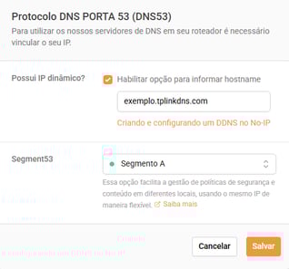 Cuidado: Se você estiver usando o recurso Segment53 com múltiplos segmentos, você deve acessar cada Local individualmente e inserir os Servidores DNS respectivos deste Local.