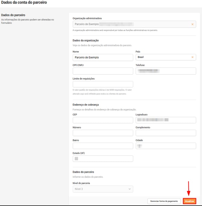 Nesta página, você pode visualizar e editar os dados do parceiro. Após realizar as alterações desejadas, clique no botão Atualizar para salvar as modificações.