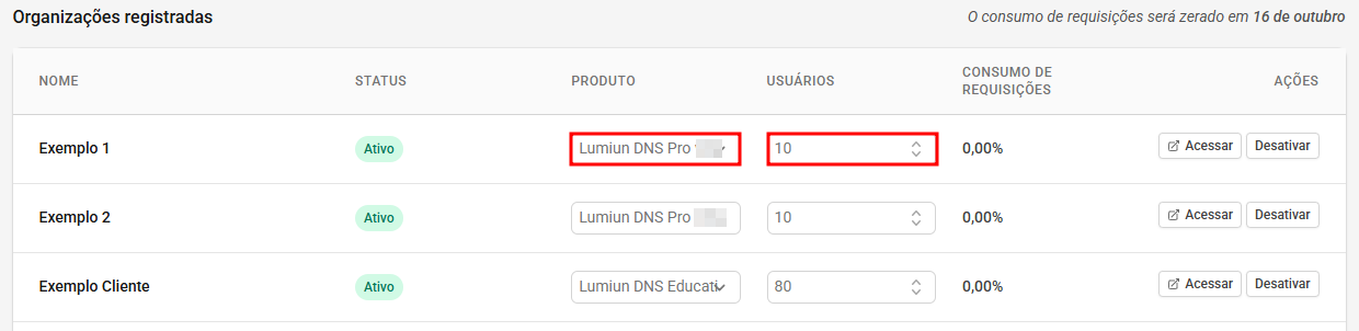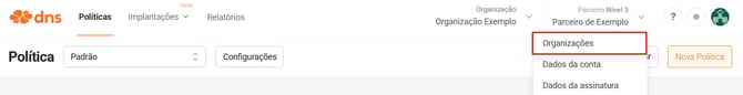 Criando e alterando organizações como Parceiro no Lumiun DNS