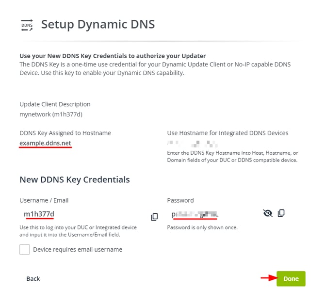 Insira um nome para identificação, e clique em Generate DDNS Key.