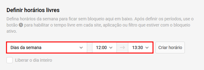 Horários para liberação de filtros e aplicações no Lumiun DNS