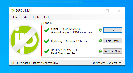 Pronto! A configuração do seu DDNS através do DUC está concluída.