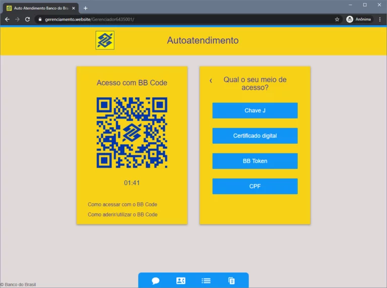 Ao preencher com seus dados e confirmar o acesso, um erro é exibido e o usuário redirecionado ao site oficial do Banco do Brasil, onde ao inserir seus dados, ele conseguirá o acesso. Porém, os dados foram também inseridos neste site "clone", concluindo assim um ataque de phising, onde o invasor já conseguiu obter seus dados.