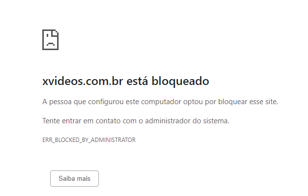 Por exemplo, se a política SafeSitesFilterBehavior estiver ativada, com valor igual a 1, o Chrome irá bloquear o acesso a sites de conteúdo adulto, exibindo esta mensagem de erro.